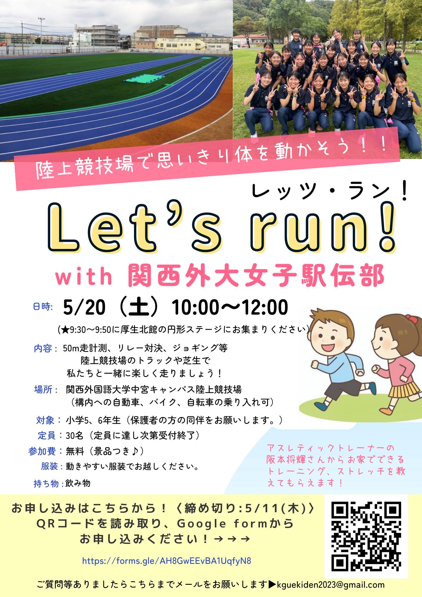 5月11日申込締切【無料イベント告知(プレゼント付)】5/20関西外大女子駅伝部と一緒に走ろう!