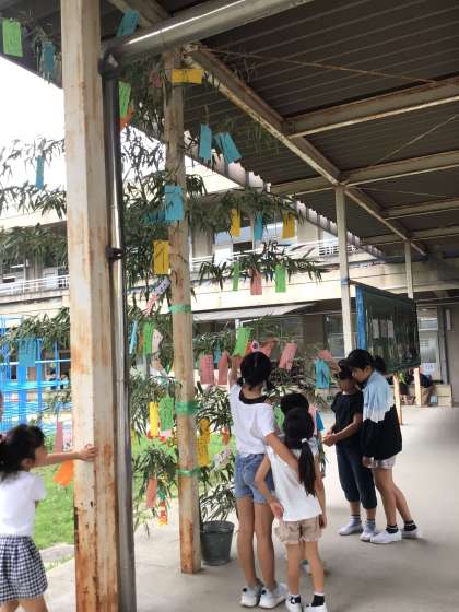 【5日水曜 七夕かざりが始まりました 今年は全校児童で】 公開日 2023/07/06 更新日 2023/07/06 五常小の日常 毎年1年生が願いごとの札をかざっていますが、 今年は1年生はもちろん、全学年から募集することになりました。 教頭先生と校務員さんが立派な笹を山之上小からいただいてきました。 いいね(0)