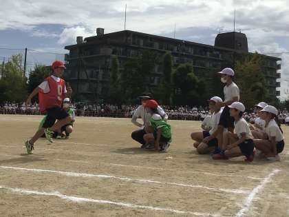 4着の赤チーム。 だけど、仲間からはねぎらいの応援!