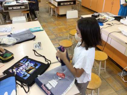 【今週の児童シリーズ 6年生の家庭科、ナップザックづくり】7