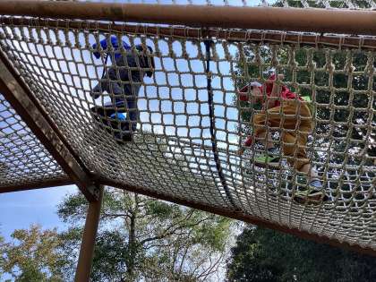 おおっとお、頭上にアスレチックコースがあるんですね。