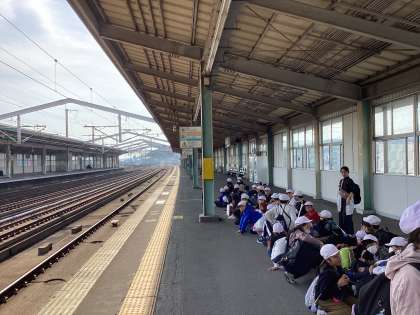 【26日木曜 持ってますねえ6年生 今日も絶好調 修学旅行!】191 公開日 2023/10/27 更新日 2023/10/27 五常小の日常 新山口駅ホームでは、こんなふうに待機しています。 添乗員さん及び先生から、40秒チャレンジのことは重々伝えていますので、ホームに列車が入ってくると緊張感が走りました。 いいね(0)