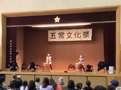 【29日日曜 五常文化祭 圧巻のパフォーマンス】2 公開日 2023/10/30 更新日 2023/10/30 五常小の日常 お次は、和太鼓にソーラン。 五常小3年生以上はおなじみの勇壮な三宅太鼓に、 6年生と4年生のグループで見事なソーランの舞を見せてくれました。 はっっ!(、、、のポーズ) はあ、どっこいしょ〜、どっこいしょっ! ご家族だけでなく、応援団もたくさん詰めかけていましたよ。 いいね(0)