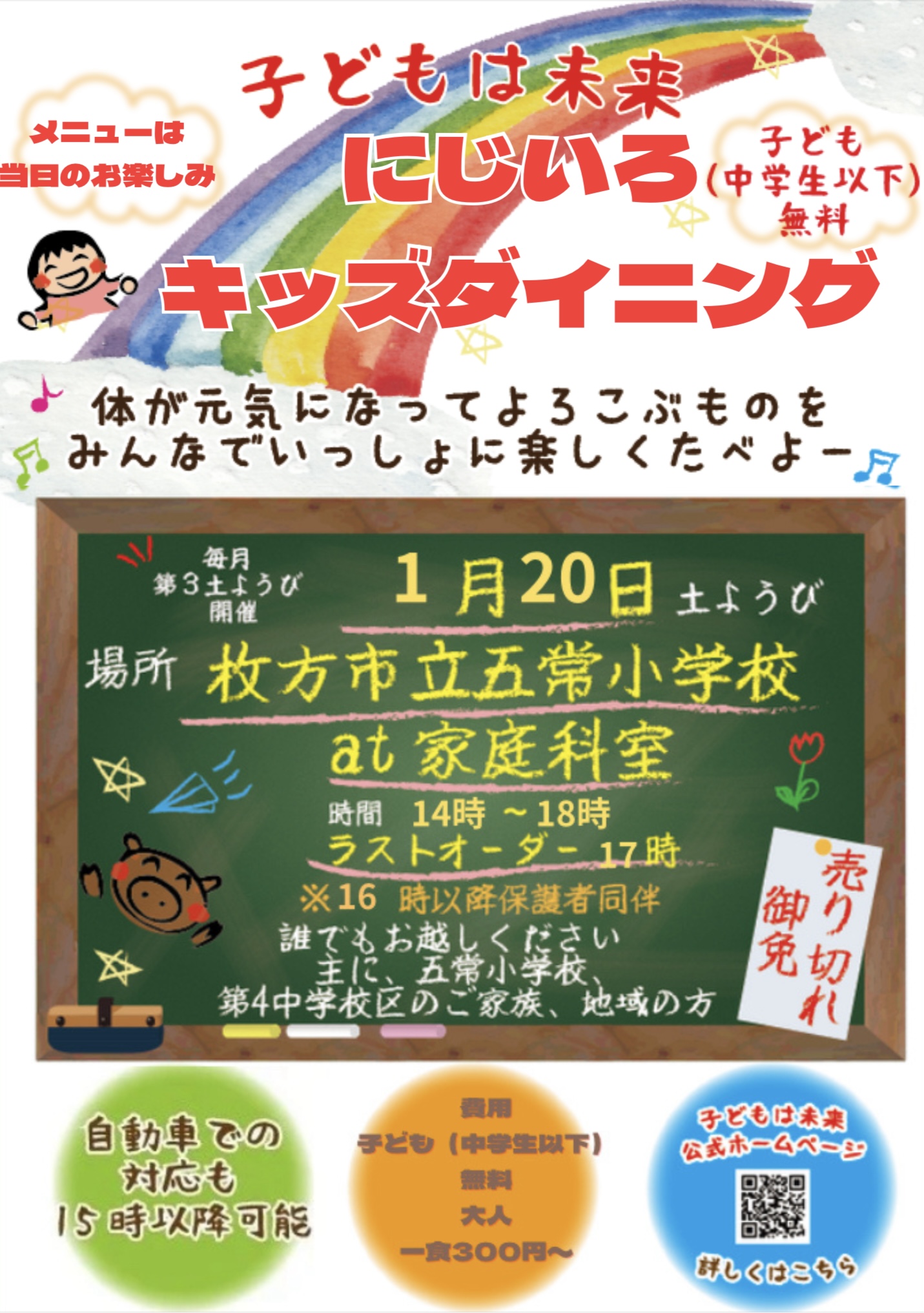 【いよいよ本日 1月20日(土)14時から子ども食堂オープン!】