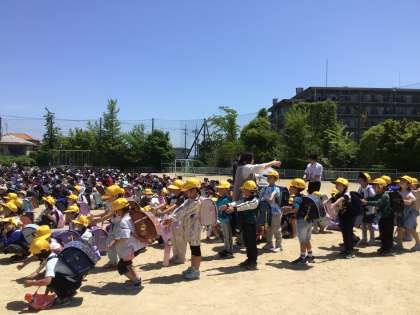 はい、1年生は整列できました。いよいよお引き渡しです。