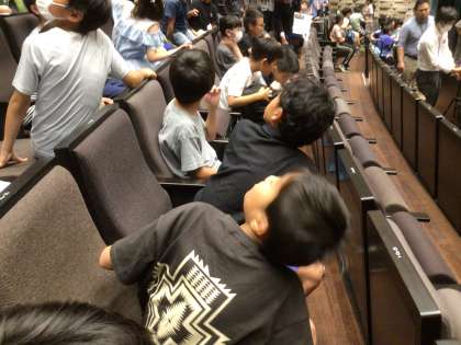 どの児童も、会場でキョロキョロ。