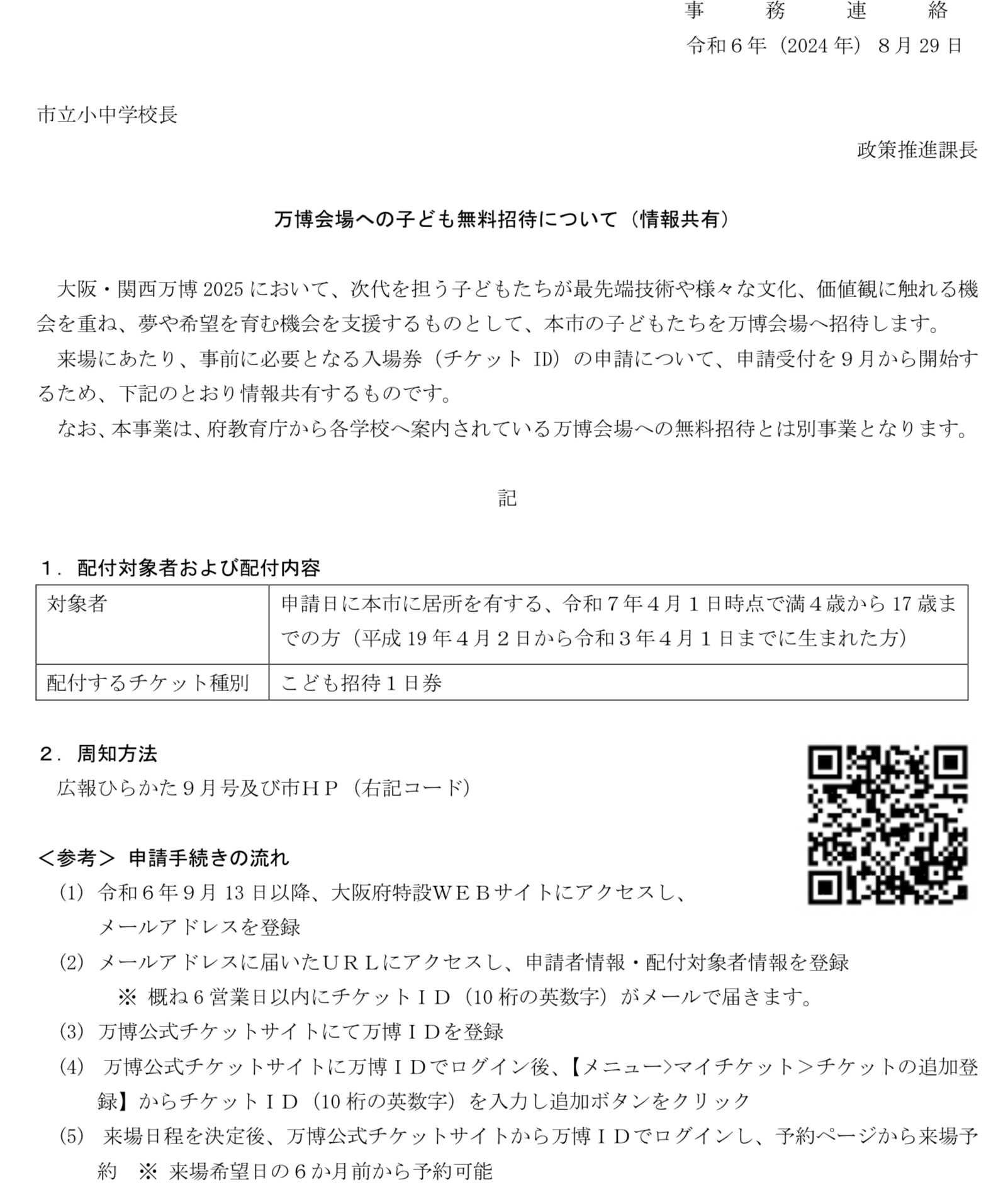 【給食を食べよう! 今日のオマケ】 公開日 2024/10/05 更新日 2024/10/05 五常小の日常 大阪関西万博開幕まで、あと半年ほど。 「命輝く未来社会のデザイン」 行ってみたい、いや、一生に一度のこと、絶対行くでしょっ! 【枚方市子ども万博無料招待に申し込んでチケットをゲットしよう!】 いいね(0)