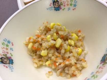 玄米にハム玉ねぎにんじんなどを加えてソテー。