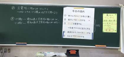 【今週の児童シリーズ 3年生の理科 電球がつく条件】2 公開日 2024/11/17 更新日 2024/11/17 五常小の日常 これが今日のテーマです。 子どもたちは、流れがわかって見通しをつけやすくなっています。 いいね(0)