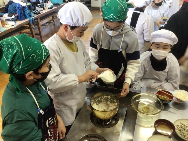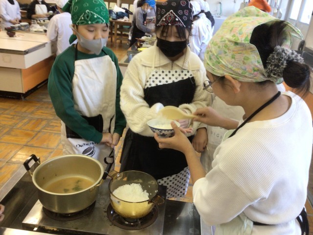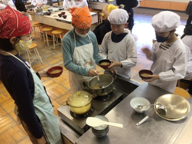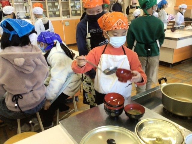 【17日火曜 5年生の家庭科 収穫した大根のおみそ汁とごはん】12