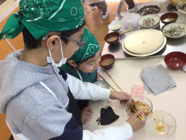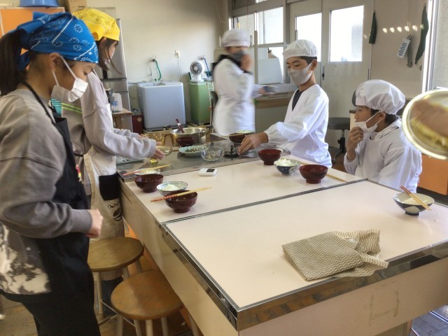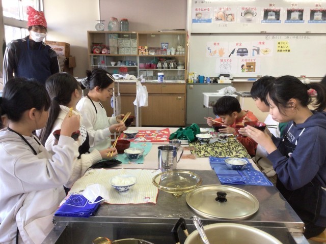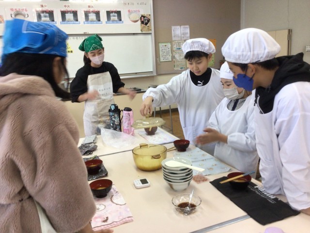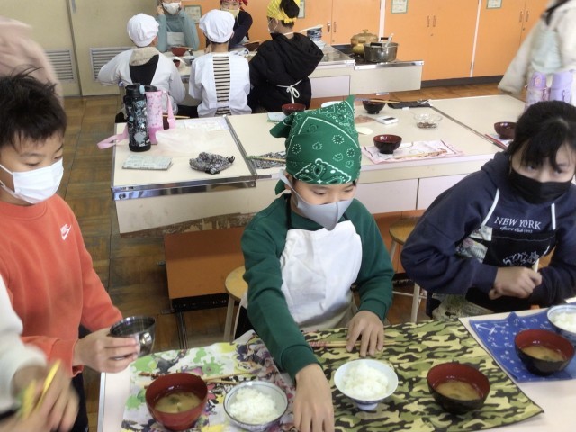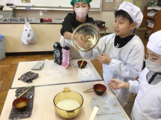 【17日火曜 5年生の家庭科 収穫した大根のおみそ汁とごはん】13