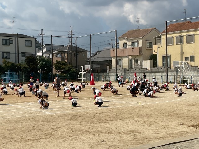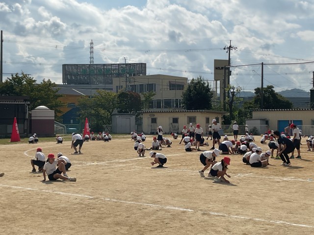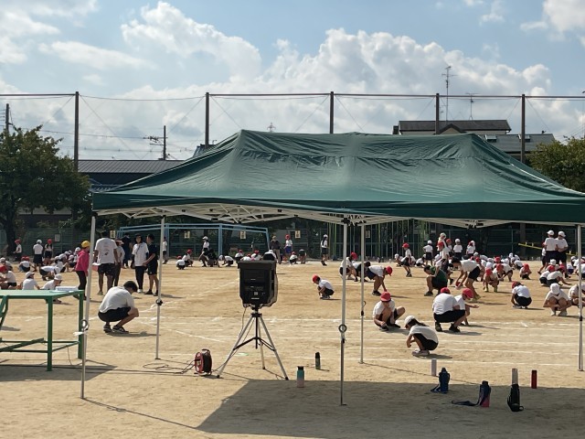 運動会の全体練習に、一所懸命に取り組んだ子どもたち。