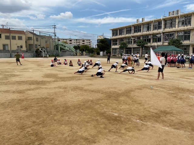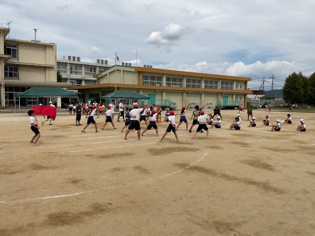 今日の昼休みの応援団は、運動場で応援合戦の練習を頑張っていました。応援団のメンバーは、並びの立ち位置等の確認を行ない、応援合戦の練習を頑張っていました。応援団は気合が入っています。