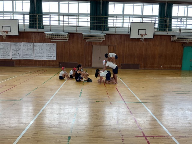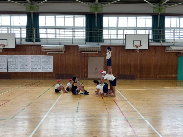 6年生の運動会実行委員の子どもたちは、昼休みに体育館で組体操の練習に励んでいました。一人ひとりが一つひとつの技の確認を行い、技の完成度を高めていました。6年生運動会実行委員の子どもたちは、一つひとつの組体操の技の完成を目ざし、6年生の先頭に立ち、頑張っています。