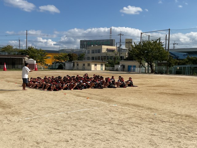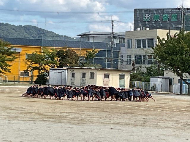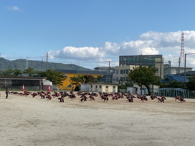 今日の5時間間の5年生の授業の様子です。5年生は、運動場で自分の立ち位置や移動場所の確認とともに今日も低姿勢で「ソーラン」の練習に励んでいました。5年生は、高学年として日々の練習を頑張っています。