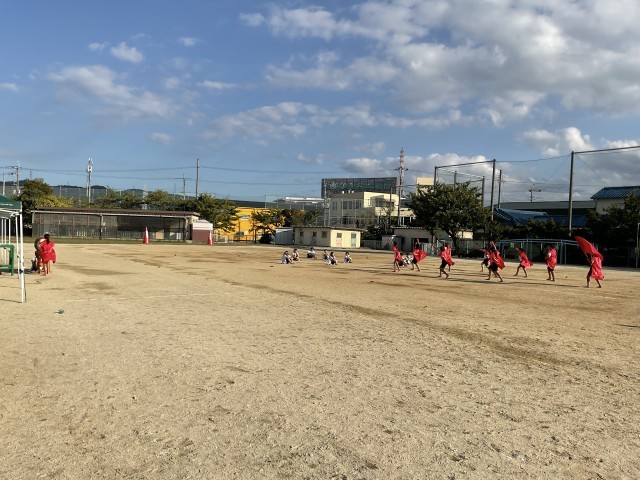 応援団は、気合が入っています。今日は、20分休み、昼休み、放課後と練習に励んでいました。放課後の練習では、当日に着用しますスタイルで本番さながらに応援合戦の練習を繰り広げて頑張っていました。