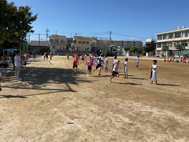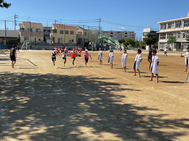 今日の昼休みは、紅白対抗リレーメンバーの最後の試走練習がありました。5〜6年生の各学年クラスから選抜された児童が、応援団の応援を受けて今日も力強い走りで本番を想定しての試走練習を頑張りました。