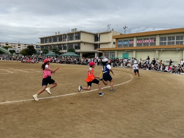 5〜6年生より選抜された選手による紅白対抗リレーです。みんな代表としてのプライドをもって、高学年の力強い走りを披露してくれました。