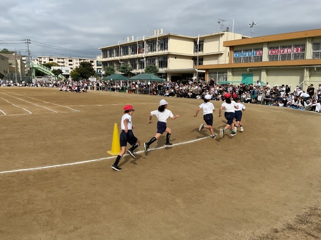 4 年生の団体演技「ダンシング・アワー」では、体全体を大きく動かしたリズミカルなダンスを披露してくれました。走競技では、カーブに気をつけながら力強い走りで、ゴールを目ざして頑張りました。