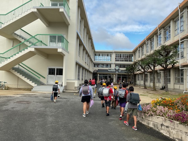 今日の東門からの登校の様子です。運動会明けの今日の子どもたちは、みんな元気に登校しました。みんな元気に「おはようございます!」としっかりとあいさつができています。運動会は終わりましたが、心機一転、これからも何事にも頑張っていきましょう。