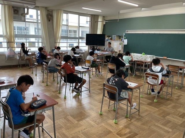 今日の5年生の授業の様子です。1時間目の1組は算数の授業で、教育実習生の先生の学習指導で、「分数のたし算とひき算」の学習で、「帯分数の計算の仕方を考える」学習の中で、計算の仕方について、みんなで確認をしていました。2組は理科の授業で 「流れる水のはたらき」の学習で、「空中から見た川の流れ」の動画を視聴し、改めて川の流れについての理解を深めていました。3組は国語の授業で、「漢字大テスト」を頑張っていました。