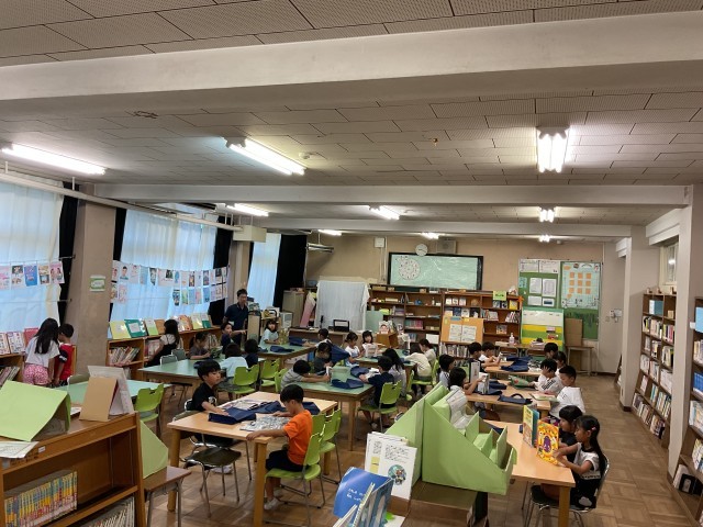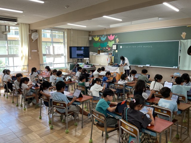 今日の1年生の授業の様子です。1時間目の1組は図書の時間で、図書室で読書をしていました。2時間目の2組は算数の授業で「9+4の計算の仕方」をタブレットを用いて学習していました。自分で考えた計算の仕方を交流して、理解を深めていました。