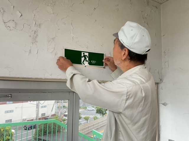 今日も校務員さんが、学校のため、子どもたちのために環境整備に取り組んでくれています。今日は教室棟3階 6年3組横の非常階段の明示を取り付けてくれていました。いつもありがとうございます。