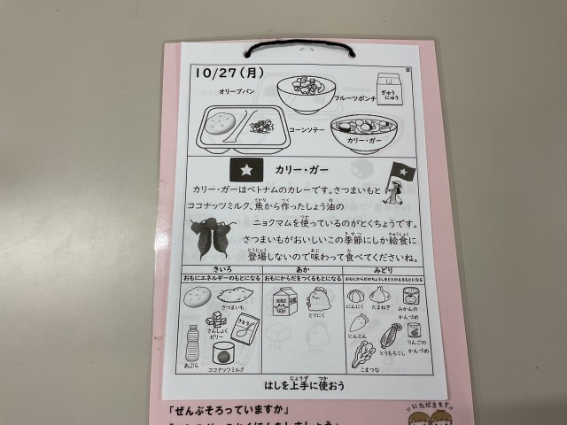 ベトナムのカレーのカリー・ガーにやわらかいオリーブパンをつけていただくととても美味しかったです。フルーツポンチは、子どもたちが楽しみにしており、美味しくいただきました。