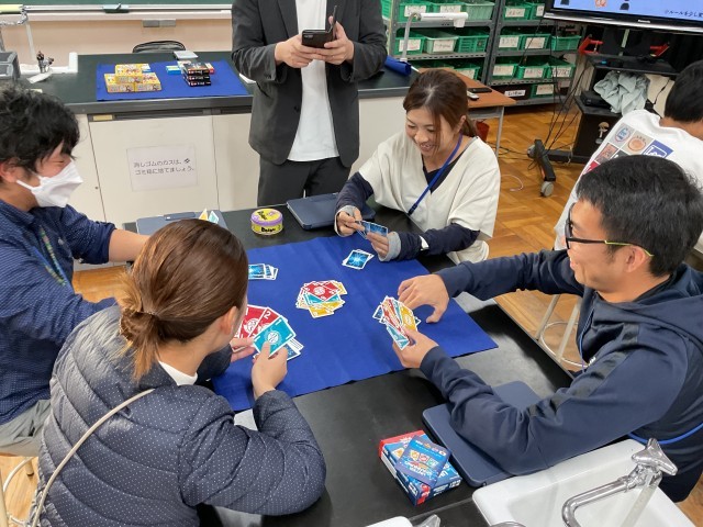 アンオフィシャルの研修会。自由参加の研修会です。今日は、ボードゲーム教室「すたらぼ」代表・日本ボードゲーム教育協会理事の上坊先生を講師に「クラスで使えるボード・カードゲーム体験会」の研修会を開催しました。上坊先生より、思考力を高めるような楽しいゲームやクラスで子どもたちがコミュニケーション力を発揮したりすることができるゲームの紹介をしていただきました。先生方は、早速思考力を高めて、カードゲームに取り組みました。改めて、多くの先生たちは、日々自分たちで自己研鑽をしています。先生も日々勉強の毎日です。
