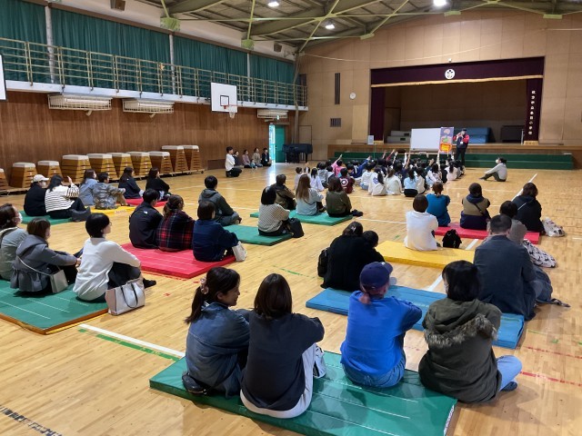 5時間目に3年生のPTA学年行事がありました。本年度も「おなかの元気プログラム」をテーマに千成ヤクルト販売(株)岡本さんより、おなかの健康についてのお話がありました。1.うんちのつくられ方を知ろう!2.よいうんちを知ろう!3.よいうんちを出すために大切なことを知ろう!についての話を聞いて、「元気なおなかですごすためにはどうするべきか」を学び知りました。また、みんな元気に「お腹を元気にする体操」をしました。途中でヤクルトマンが登場し、各クラスで記念撮影し、みんな大喜びでした。雨の中、多数のご参加ありがとうございました。PTA学年委員のみなさま、企画、運営ありがとうございました。