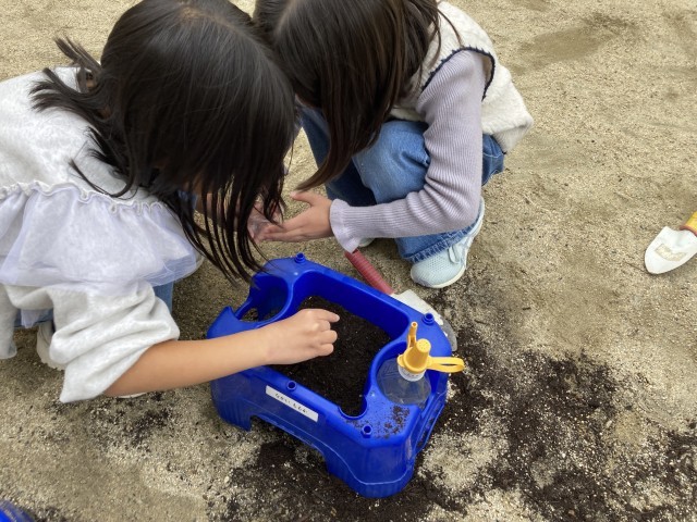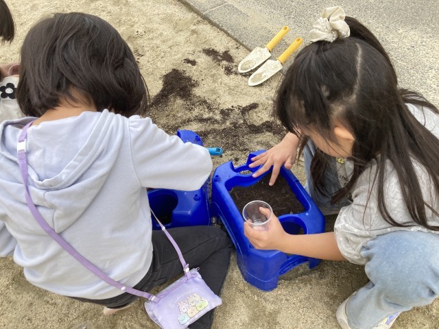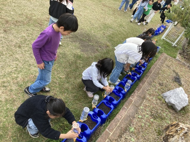 今日の5時間目の2年生は、生活科の学習の一環で、中庭で「20日大根」の種植えに取り組んでいました。先生の注意事項をしっかり聞いて、取り組むことができました。今後の生長が楽しみです。