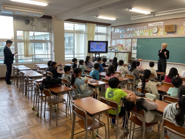 今日の2時間目に3年3組で教育課程実施状況に関する授業参観(外国語活動)がありました。これは学習指導要領をふまえた適切な授業が実施されているかを確認するもので、枚方市教育委員会 教育指導課より高橋指導主事様が来校され、授業を参観されました。