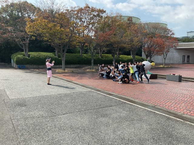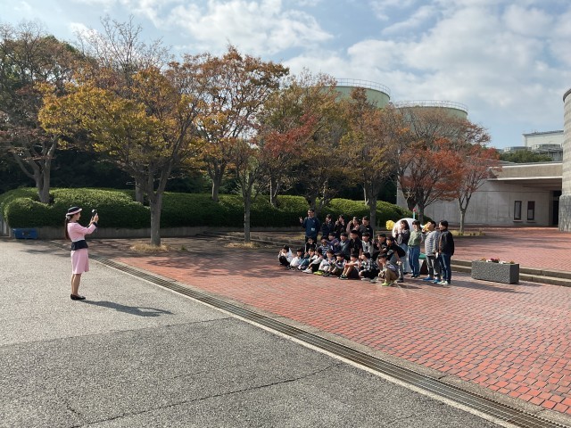 大阪ガス科学館前で記念撮影です。みんな元気で、いい笑顔です。