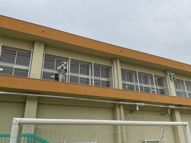 今日も校務員さんが、学校のため、子どもたちのために環境整備に取り組んでくれています。今日は昼休みに体育館の高所に上がったボールを高所作業対応していただきました。いつもありがとうございます。