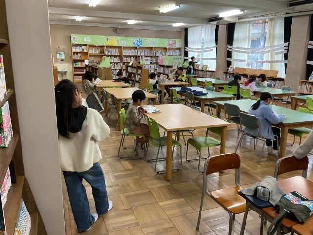 子どもたちは、運動場以外の場所で、自由に昼休みの時間を過ごしていました。