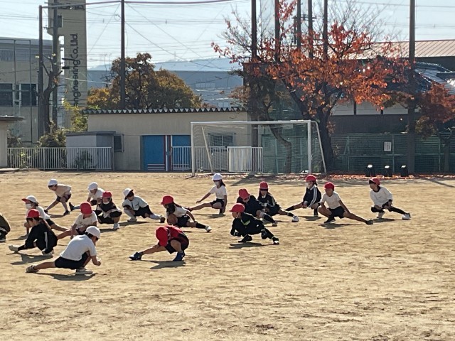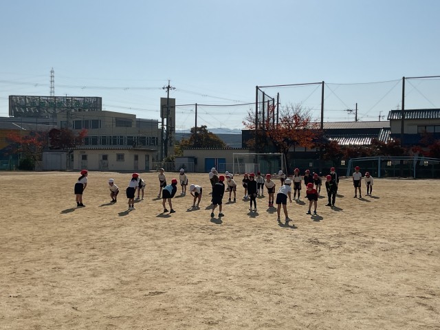 2年1組さん。体育の時間の始まりです。子どもたちは、チャイムと同時に授業が始められるよう、集合していました。