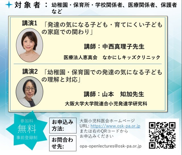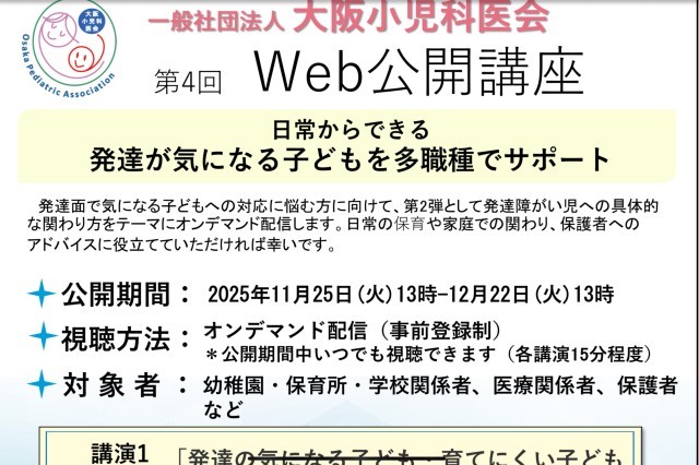 参加費無料です。事前登録が必要です。 → Web公開講座「日常からできる発達が気になる子どもを多職種でサポート」(案内)