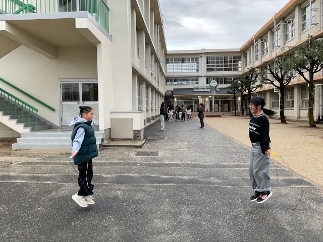 朝の少しの時間でも運動場で遊んだり、なわとびをして運動をしたりと、最終日もいつも通りの子どもたち。