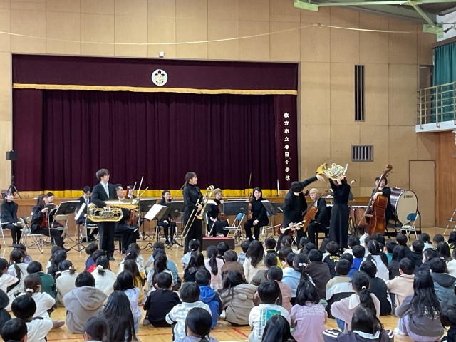本物を間近で感じた子どもたち。オーケストラの編成、楽器、指揮者について詳しく知った子どもたち。