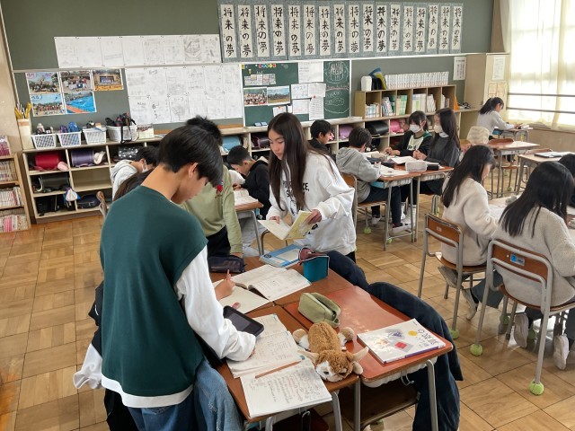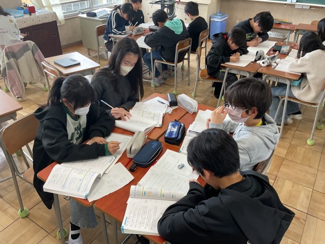 わからないところを相談したり、確認をしたりしながらグループで取り組んでいました。