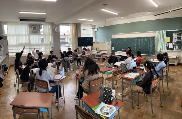 伝える相手は、先生ではなく、クラスの仲間。仲間の意見や考えを聞いて、内容を広げたり深めたりする場面も。