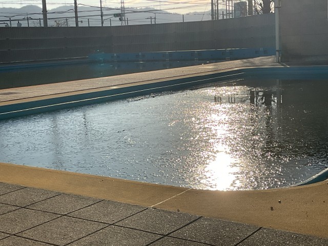 「プールもこおっている」と言う声も。うっすら氷がはっていました。