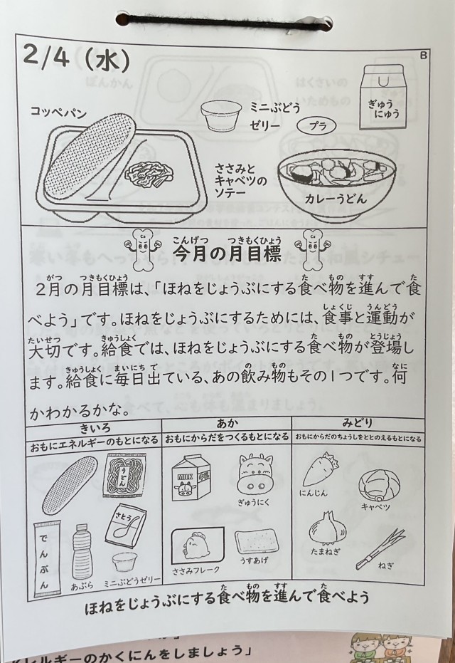 2月は、「ほねをじょうぶにする食べ物を進んで食べよう」です。