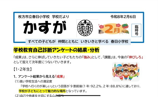 → 学校だより「かすが」2月号 (学校教育アンケート・児童)