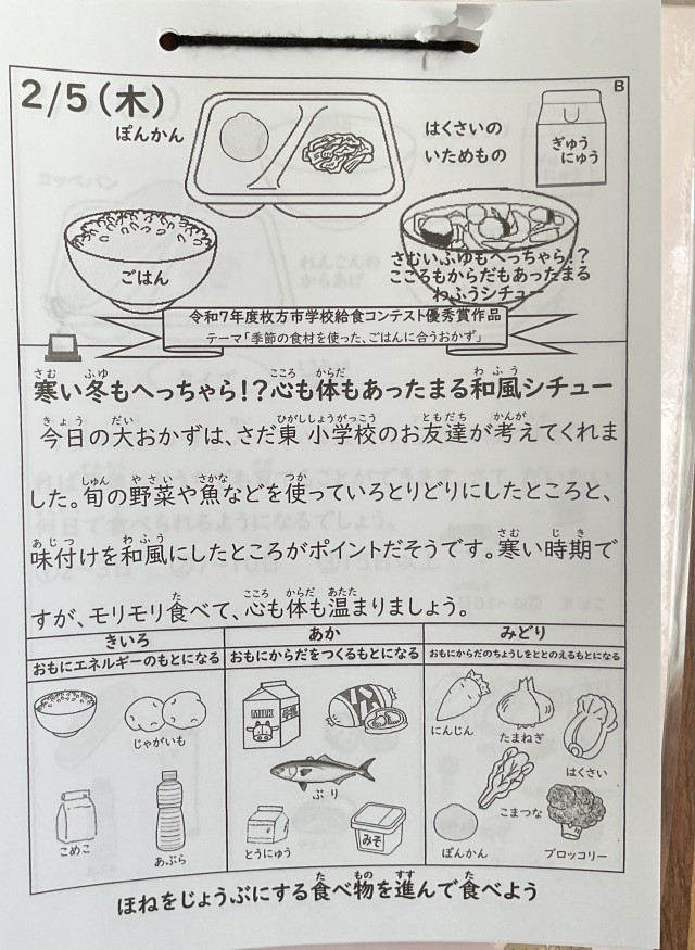 さだ東小学校の児童が考えたメニューで、名前の通り、ぽっかぽかに温まりました。