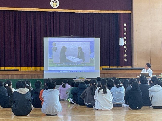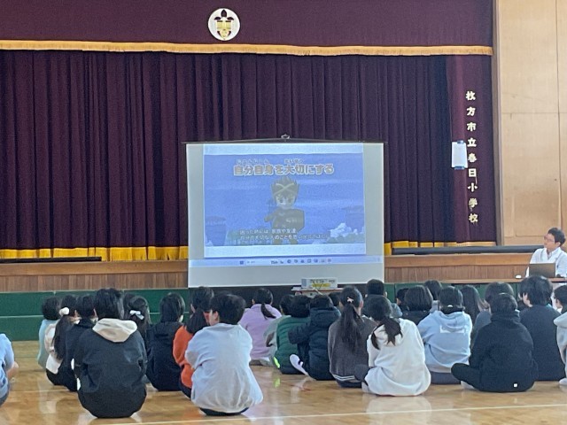 子どもたちにわかりやすいよう、薬物の怖さや誘われた時の対処の仕方などを動画を通して教えてくださいました。