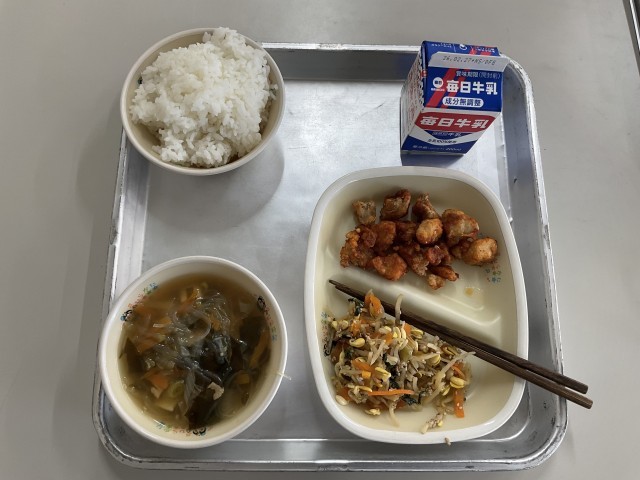 ヤンニョムチキンは、味付けがよく身もやわからく食べやすくて、美味しかったです。わかめスープは、具が柔らかく美味しくいただきました。