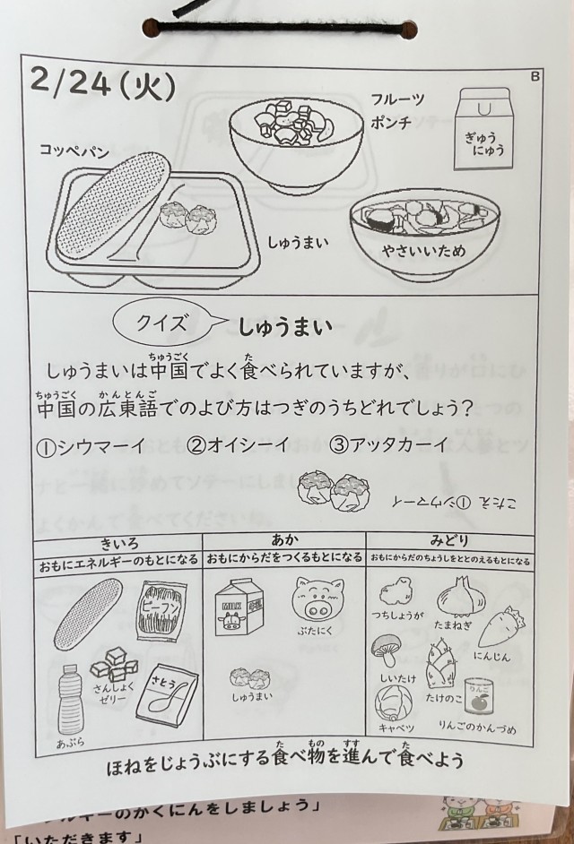野菜炒めにビーフンも入っていました。たくさんの野菜をビーフンとともに、美味しくいただきました。