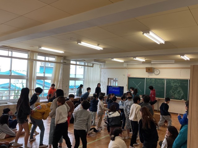今日の5時間目の図工室では、なかよし学級の卒業お祝い会が開催されました。なかよし学級を卒業する6年生が、なかよし学級のみんなから卒業祝いを受けて、○✖️クイズで、大いに盛り上がり、楽しいひと時を過ごすことができました。