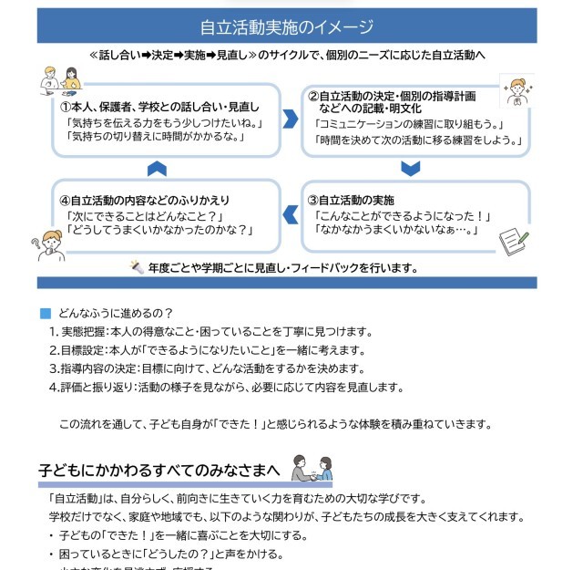 子どもたちの「今」だけでなく、10年後、20年後を見据えた支援・指導についても、学校と家庭・地域が連携して取り組んでいくことが重要です。